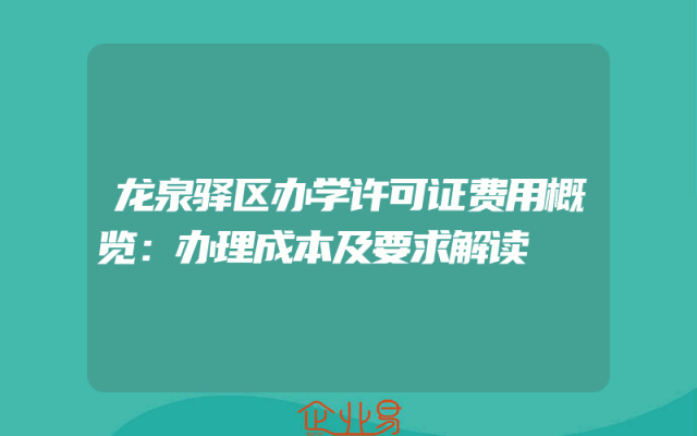 - 龙泉驿区办学许可证费用概览:办理成本及要求解读