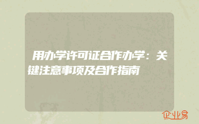 - 用办学许可证合作办学:关键注意事项及合作指南