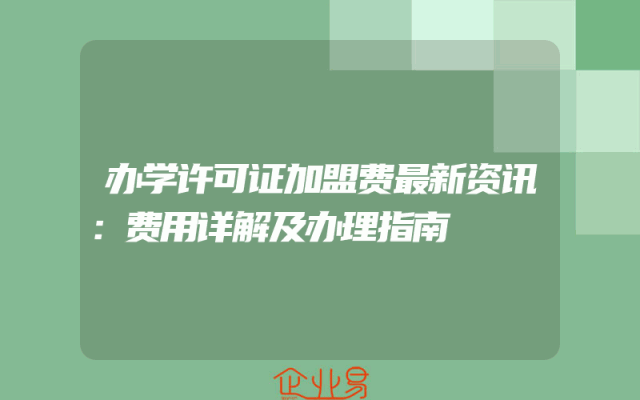 - 办学许可证加盟费最新资讯:费用详解及办理指南