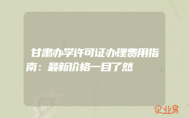 - 甘肃办学许可证办理费用指南:最新价格一目了然