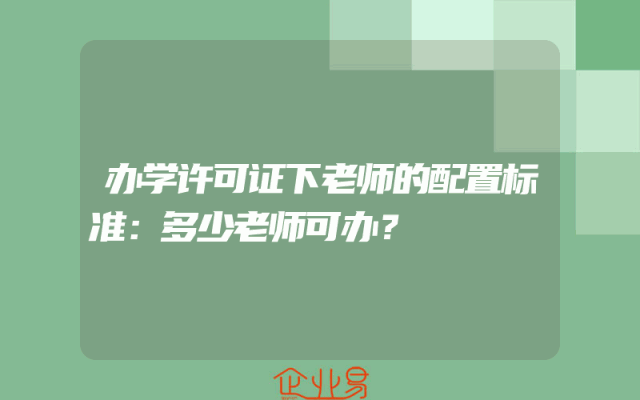 - 办学许可证下老师的配置标准:多少老师可办?一、引言随着教育的快速发展,越来越多的教育机构开始兴起。为了保障教育质量,各地教育部门都对办学机构的人员配置提出了明确要求。其中,教师的数量和资质是办学许可证审核的重要内容之一。那么,到底多少老师才
