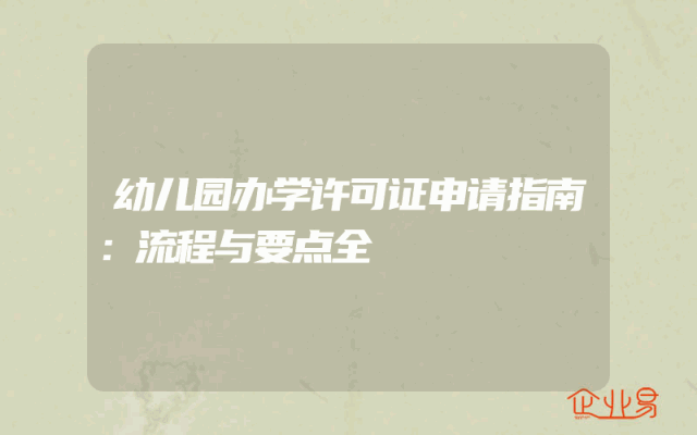 - 幼儿园办学许可证申请指南:流程与要点全解析一、幼儿园办学许可证的重要性在幼儿园教育事业迅猛发展的背景下,办理幼儿园办学许可证成为了新设幼儿园必须遵循的基本流程之一。许可证是幼儿园合法运营的凭证,对于保障教育质量、维护师生权益具有重要意义。二