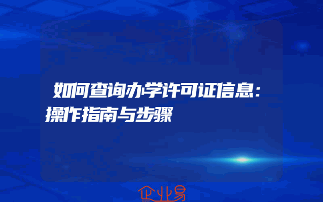 - 如何查询办学许可证信息:操作指南与步骤解析一、了解办学许可证的重要性在现代教育行业中,无论是公办学校还是民办学校,都需要拥有合法的办学许可证。办学许可证是教育机构开展教育教学活动的重要凭证,它代表了学校的合法性和教育教学质量的保障。因此,查