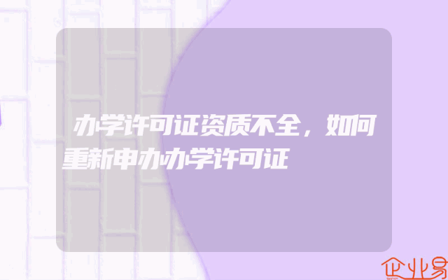 - 办学许可证资质不全,如何重新申办办学许可证了解资质缺失情况在重新申办办学许可证之前,首先需要详细了解现有资质不全的具体情况。学校应该核查已持有的证件和资质,对照教育部门的办学标准和要求,逐一核对每项资质是否齐全。通过这一过程,学校可以确定哪