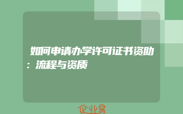 - 如何申请办学许可证书资助:流程与资质