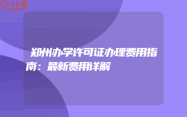 - 郑州办学许可证办理费用指南:最新费用详解一、前言随着教育的不断发展,越来越多的人选择从事教育行业。在郑州,若想开展教育培训业务,必须办理办学许可证。本文将详细解析郑州办学许可证的办理费用,帮助申请者了解相关费用并做好充分准备。二、办理费用的