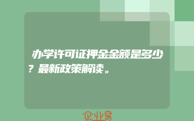 - 办学许可证押金金额是多少?最新政策解读一、引言近年来,随着社会经济的快速发展和教育事业的蓬勃发展,越来越多的教育机构涌现出来。为了规范办学行为,保障教育质量,政府对办学机构的监管也日益严格。其中,办学许可证的办理及其押金问题,成为众