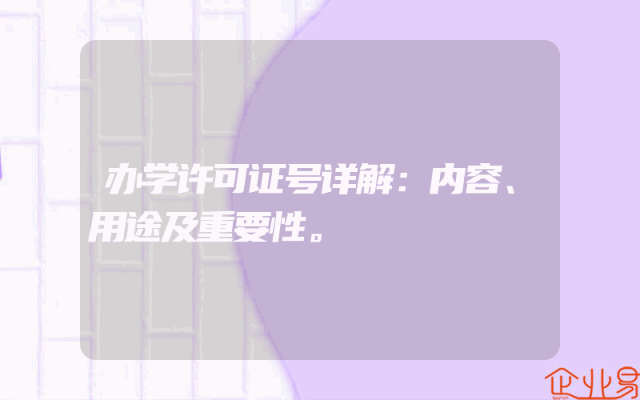 - 办学许可证号详解:内容、用途及重要性。