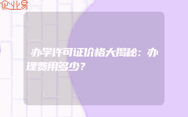 - 办学许可证价格大揭秘:办理费用多少?一、前言随着教育行业的蓬勃发展,越来越多的个人和组织希望进入教育培训领域。而办学许可证作为进入该领域的“通行证”,其办理费用成为了许多意向创办学校者关注的焦点。本文将围绕办学许可证的办理费用展开探