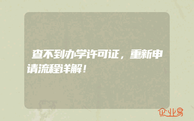 - 查不到办学许可证,重新申请流程详解!一、了解办学许可证的重要性及其缺失原因办学许可证是教育机构合法运营的必要资质。一旦丢失或无法查证,应立即查明原因并着手重新申请。造成这种情况的原因可能包括管理不善、资料遗失或是政策更新导致的证件失效等。二
