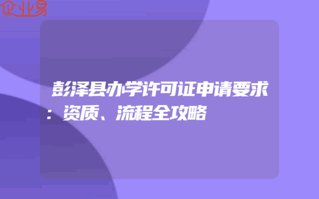 - 彭泽县办学许可证申请要求:资质、流程全攻略