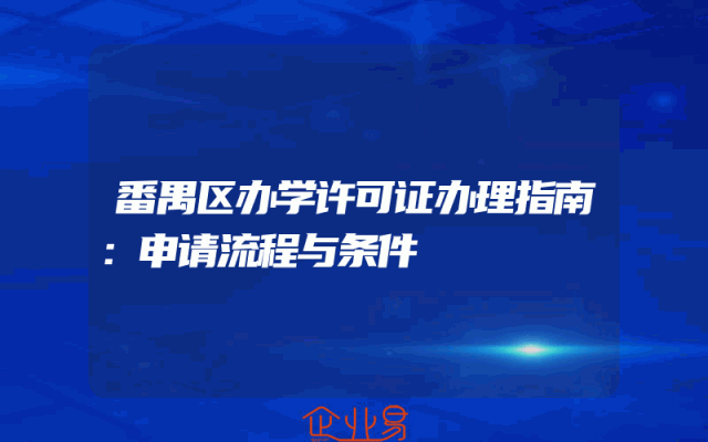 - 番禺区办学许可证办理指南:申请流程与条件解析一、前言随着社会经济的不断发展,教育培训行业在番禺区日益兴盛。若您计划在番禺区开设学校或培训机构,那么办理办学许可证是必不可少的一环。本文将为您详细解析番禺区办学许可证的申请流程与条件,助您顺利办