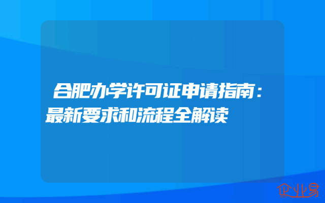 - 合肥办学许可证申请指南:最新要求和流程全解读