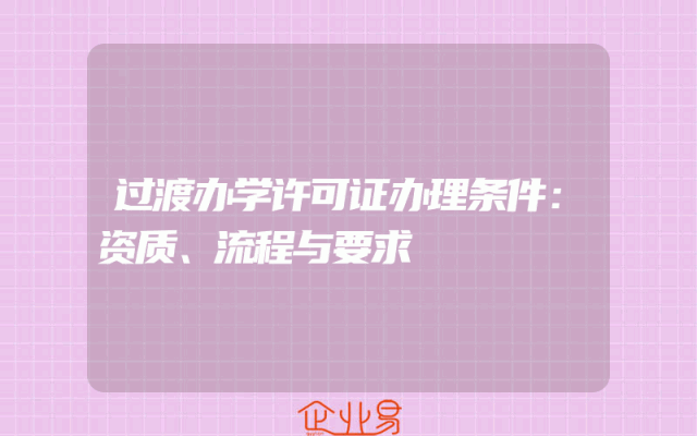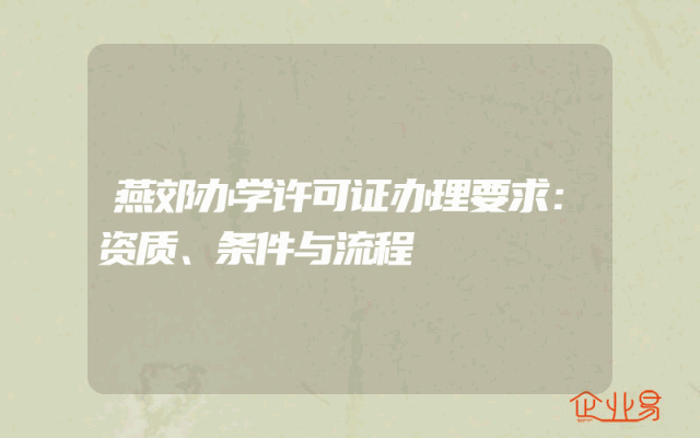 - 燕郊办学许可证办理要求:资质、条件与流程