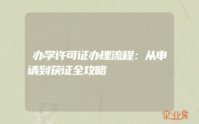 - 办学许可证办理流程详解:从申请到获证全攻略一、了解办学许可证办理政策与要求在准备办理办学许可证之前,首先要对相关政策和要求有一个全面的了解。这包括查询最新的教育法规、了解教育行政部门的指导意见以及相关的办学标准。确保你的教育机构符合