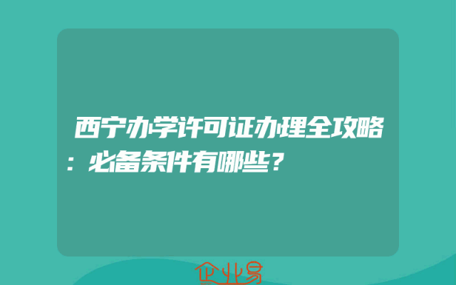 - 西宁办学许可证办理全攻略:必备条件有哪些?