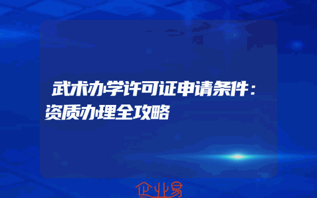 - 武术办学许可证申请条件详解:资质办理全攻略一、引言随着传统文化的复兴,武术教育日益受到社会各界的重视。想要开展武术教学活动,必须依法取得武术办学许可证。本文旨在详细解读武术办学许可证的申请条件,为有意从事武术教育的机构或个人提供全面