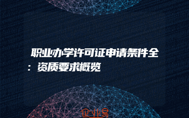 - 职业办学许可证申请条件全解析:资质要求概览一、职业办学许可证概述职业办学许可证是我国对职业教育培训机构进行管理和规范的重要文件之一,是确保职业教育质量、保障学员权益的关键资质。申请职业办学许可证,意味着教育机构在软硬件设施、师资队伍、教学管