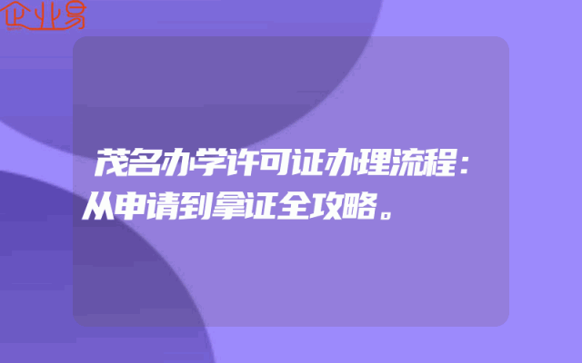 - 茂名办学许可证办理流程:从申请到拿证全攻略。
