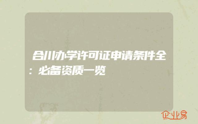 - 合川办学许可证申请条件全解析:必备资质一览一、办学许可证的重要性在教育行业,办学许可证是任何教育机构合法运营的基石。它是学校开展教育教学活动、招收学生、颁发学历证明等行为的法定许可。对于想要合规办学的