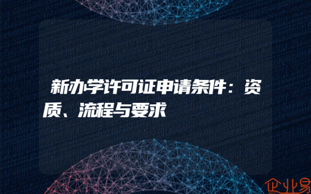 - 新办学许可证申请条件详解:资质、流程与要求一、办学许可证申请资质在教育行业竞争日益激烈的背景下,申请新办学许可证是一项涉及多方面资质审查的重要事项。作为申请者,首先要了解教育部的相关规定和具体要求,包括但不限于人员资质、场所设施和教学资源等