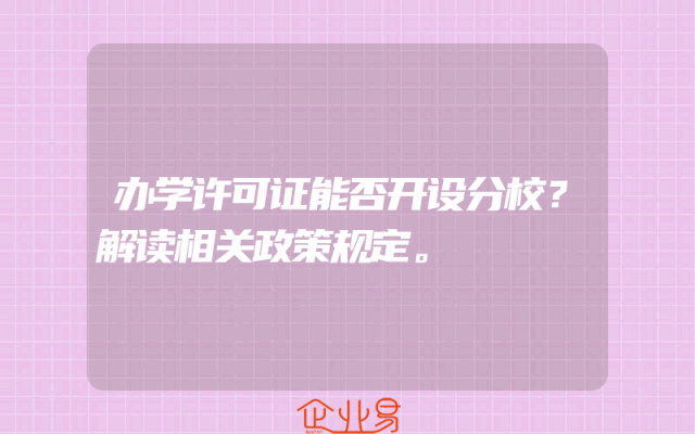 - 办学许可证能否开设分校?解读相关政策规定一、办学许可证的基本概念办学许可证是我国对教育机构进行管理和规范的重要文件之一,它标志着教育机构具备合法从事教育活动的资格。持有办学许可证的机构,需要在许可范围内从事教育活动,严格遵守国家教育法律法规