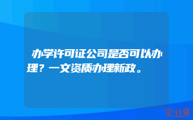 - 办学许可证公司是否可以办理?一文资质办理新政。