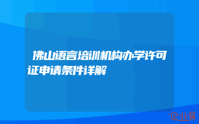 - 佛山语言培训机构办学许可证申请条件详解
