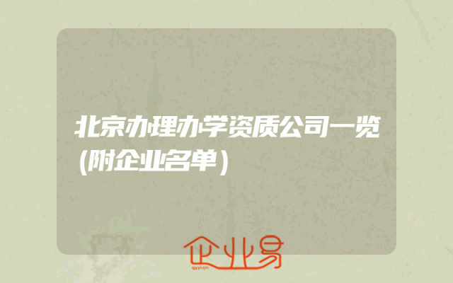 - 北京办理办学资质公司一览(附企业名单)近年来,随着社会对教育的重视程度不断加深,教育培训行业蓬勃发展。在北京,许多企业纷纷涉足教育领域,申请办学资质。本文将对北京办理办学资质的公司进行介绍,并附上相关企业名单,以便读者更好地了解这一