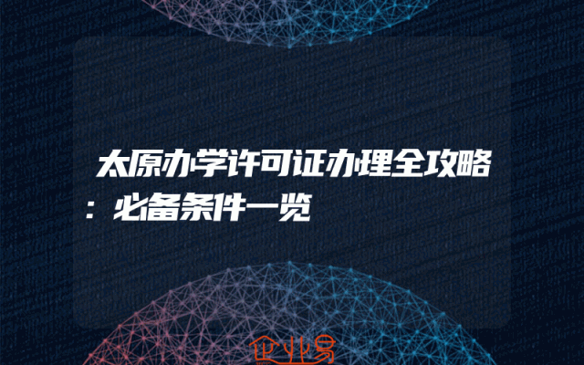 - 太原办学许可证办理全攻略:必备条件一览了解办学许可证办学许可证是指教育机构合法开展教育、教学活动的法律凭证。在太原市,任何教育机构想要进行正规化教学、招生、考试等活动,都必须首先取得办学许可证。这一证