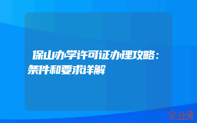 - 保山办学许可证办理攻略:条件和要求详解一、引言随着教育行业的快速发展,越来越多的人选择从事教育工作。在保山市,若您有意开展教育机构或学校,办学许可证的办理成为您必须要面对的事项。本文将详细解析保山办学许可证的办理条件与要求,帮助您更好地了解