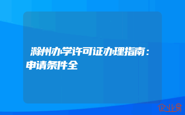 - 滁州办学许可证办理指南:申请条件全解析一、引言随着社会经济的发展,教育培训行业在滁州地区蓬勃发展,各类教育机构纷纷涌现。为了更好地规范行业秩序,保障教育质量,滁州市对办学许可证的办理进行了详细的规定。本篇文章将为您详细解析滁州办学许可证的申