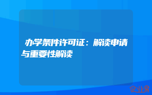 - 办学条件许可证:解读申请与重要性解读