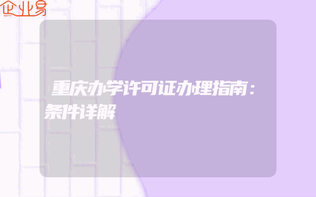 - 重庆办学许可证办理指南:条件详解为了满足各类教育培训机构在重庆市的设立与运营需求,本指南详细阐述了办学许可证的办理条件,旨在帮助申请者了解整个流程并成功获得办学许可。一、了解办学许可证的重要性1