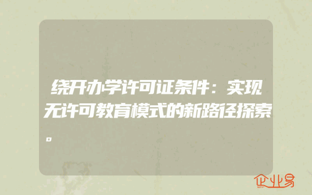 - 绕开办学许可证条件:实现无许可教育模式的新路径探索。