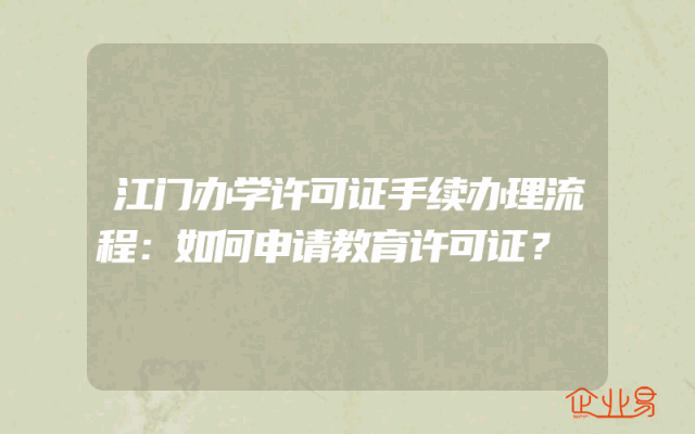 - 江门办学许可证手续办理流程:如何申请教育许可证?