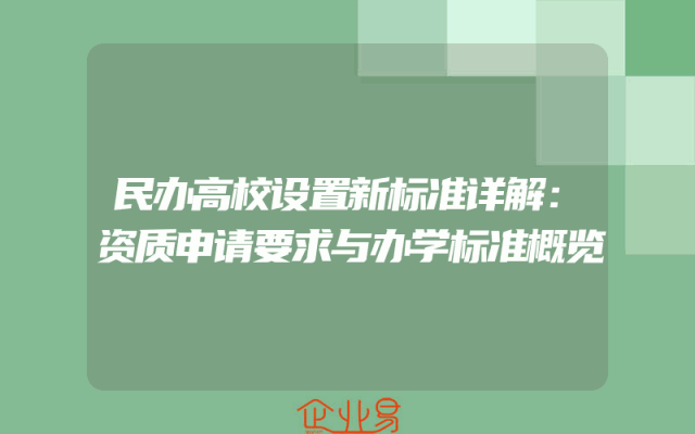 - 民办高校设置新标准详解:资质申请要求与办学标准概览