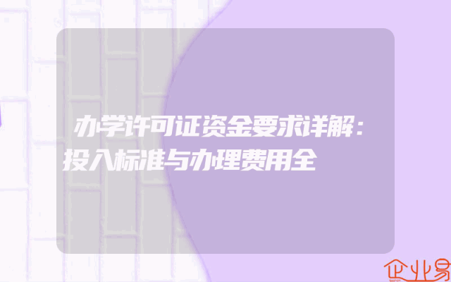 - 办学许可证资金要求详解:投入标准与办理费用全