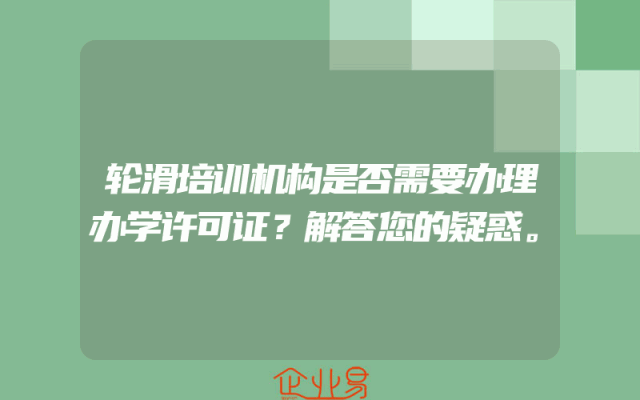 - 轮滑培训机构是否需要办理办学许可证?解答您的疑惑。