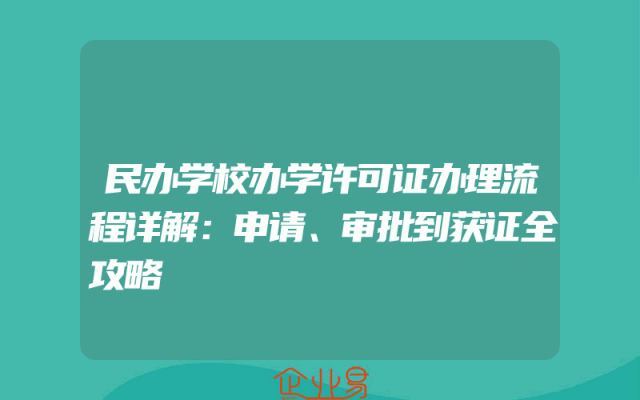 - 民办学校办学许可证办理流程详解:申请、审批到获证全攻略