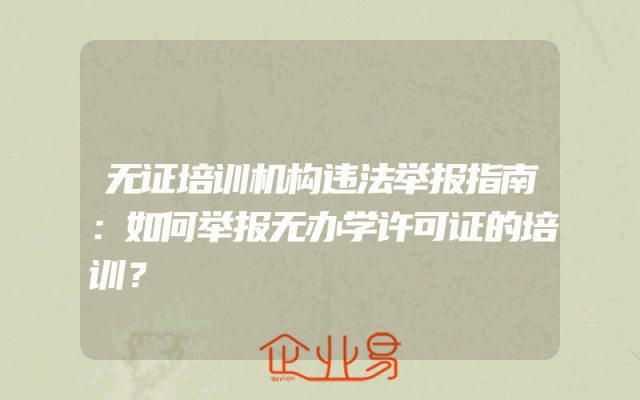 - 无证培训机构违法举报指南:如何举报无办学许可证的培训?