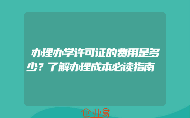 - 办理办学许可证的费用是多少?了解办理成本必读指南