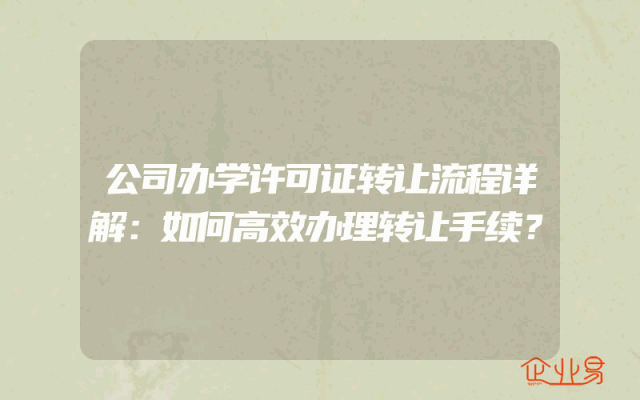 - 公司办学许可证转让流程详解:如何高效办理转让手续?
