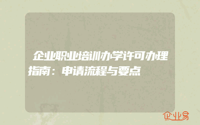 - 企业职业培训办学许可办理指南:申请流程与要点