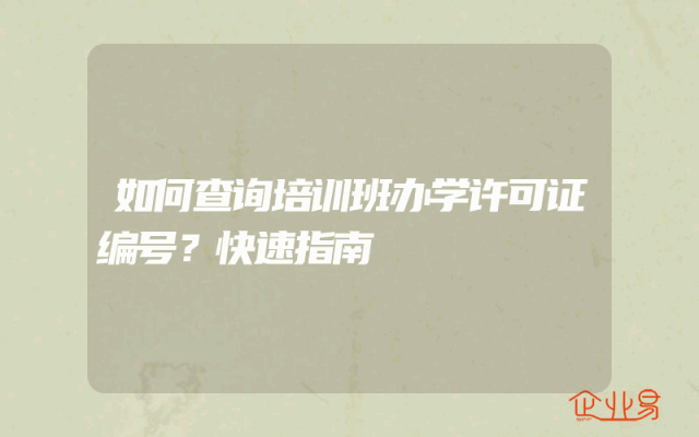 - 如何查询培训班办学许可证编号?快速指南