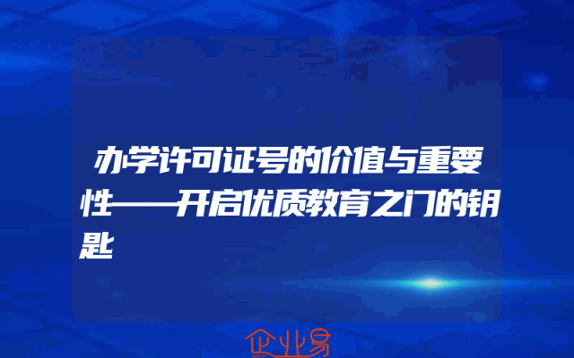 - 办学许可证号的价值与重要性——开启优质教育之门的钥匙