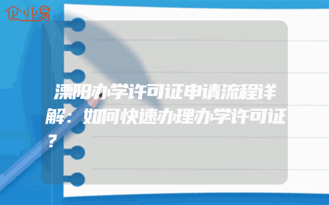 - 溧阳办学许可证申请流程详解:如何快速办理办学许可证?