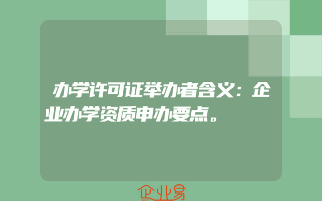 - 办学许可证举办者含义:企业办学资质申办要点。