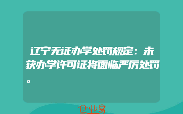 - 辽宁无证办学处罚规定:未获办学许可证将面临严厉处罚。