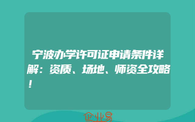 - 宁波办学许可证申请条件详解:资质、场地、师资全攻略!